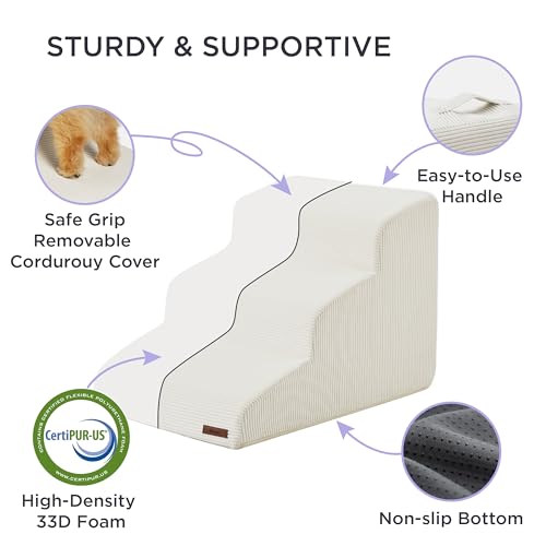 Durable & Sturdy: These pet ramp stairs feature strong and reliable 33D high-density, lightweight foam, ensuring a robust build that’s easy to move at the same time as providing stable enhance for cats and small/medium-sized dogs. The non-slip corduroy pet stair cover adds extra stability, ensuring your pet’s safety and preventing any mishaps as they navigate up and down.