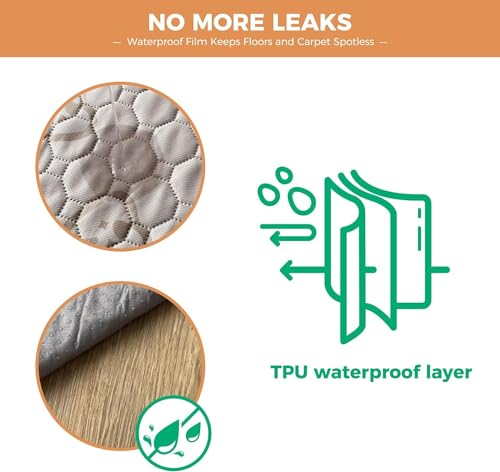 đŸ¶ă€Overlook About Floor Cleaning】Armed with a TPU waterproof membrane layer, our non-slip puppy mat offers unbeatable leakproof protection. Say goodbye to urine stains on your floor; our puppy pads keeps it fresh and dry. No more cleaning up messes or worrying about stain removal – we’ve got you covered!