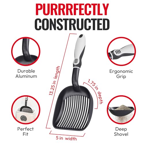 Specification: iPrimio Universal Cat Litter Scooper Holder & Black Litter Scooper Bundle – Non Stick Plated Durable Aluminum Cat Litter Scooper, Patented Design – Stable Scooper Holder – Kitty Litter Box Accessories