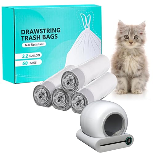 Self Cleaning Cat Litter Box, Cat Waste Bags for Automatic Cleaning Litter Boxes, Drawstring Extra Sturdy Pet Poop Bags CLB01, 20 x 18 Inches (4 Packs/60 Counts)