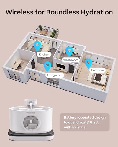 Wireless Convenience: Say goodbye to tangled cords. Our wireless cat water fountain provides hassle-free placement anywhere in your home, ensuring your cat stays refreshed without limitations and preventing pets from biting on wires