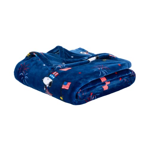 Berkshire Blanket VelvetLoft Cute Character Snoopy Plush Throw, Navy Parade Blanket with Peanuts Characters, 55 x 70 in (Official Product)