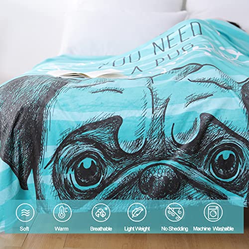 Pug Kids Sherpa Fleece Throw Blanket, Cute Cartoon Pug Plush Throw Blanket Super Soft Warm Bed Sofa Chair Throw for Kids and Adults (Pug-3, 60″x 80″)