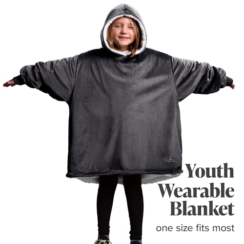 Bare Home Wearable Sherpa Blanket – Warm & Cozy – Soft Plush Blanket Hoodie – Adult and Youth Sizes