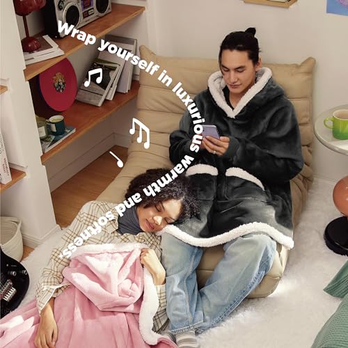 Bedsure Wearable Blanket Hoodie with Sleeves – Sherpa Hooded Blanket Adult as Gifts for Mom Women, Winter Sweatshirt Blanket Standard Grey Black