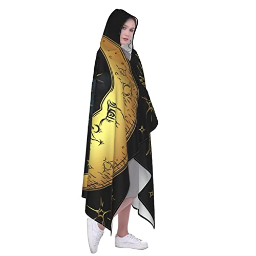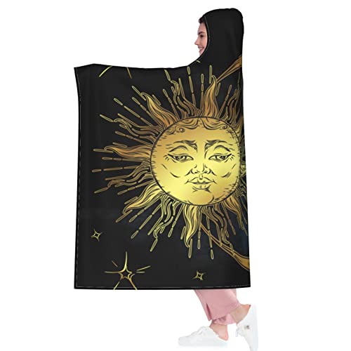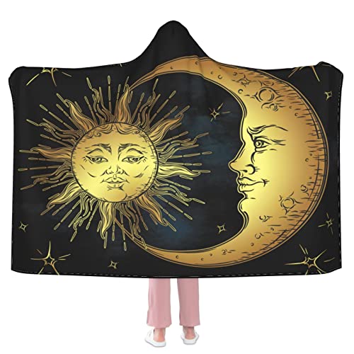 Boho Sun Moon Stars Hooded Blanket Anti-Pilling Flannel Wearable Blanket Hoodie-Plush Warm Blanket Throw Blankets Fit for Kids, Adults, Teens