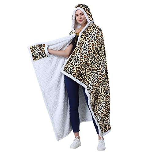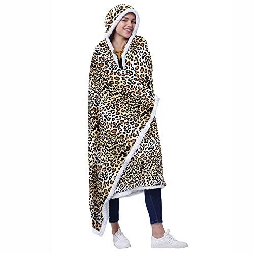 Catalonia Cheetah Hooded Blanket Poncho | Wearable Blanket Wrap with Hand Pockets | Cozy Sherpa Fleece Throw Cape for Children and Adults, Women Gift
