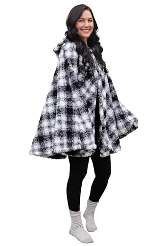 Catalonia Women’s Poncho Cape, Sherpa Cloak Coat, Snuggy Hooded Wearable Blanket, Gift Idea for Mom and Teen Girls