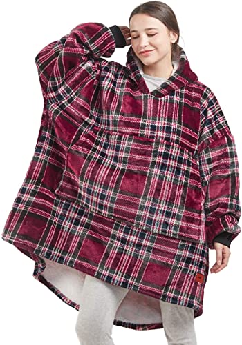Degrees of Comfort Hoodie Blanket | Soft Microfiber Fleece and Fuzzy Sherpa Wearable Blanket