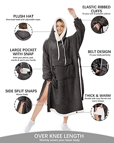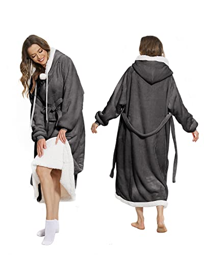 MILDLY Wearable Blanket Sherpa Fleece Thick Warm Long Hoodie Blanket 1PCS Big Hooded Sweatshirt Gift for Adults Women 5’5”-5’9”