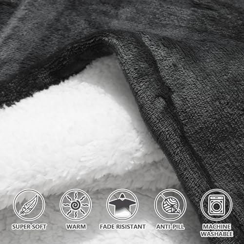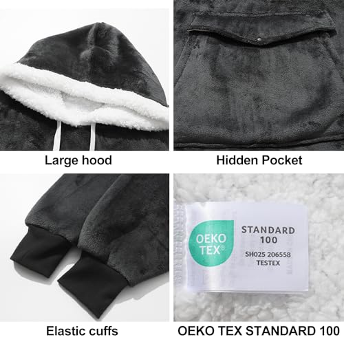 Qeils Oversized Wearable Blanket Hoodie, Comfy Sherpa Sweatshirt Pullover Jacket (Large Pocket, Dark Grey, Adult)