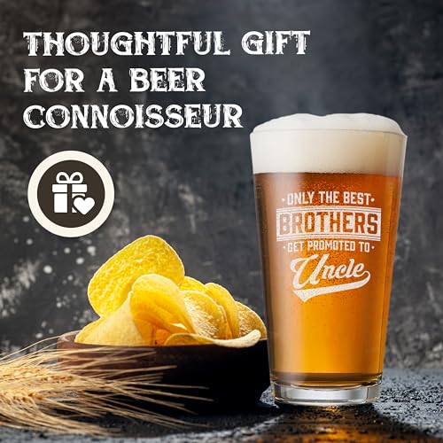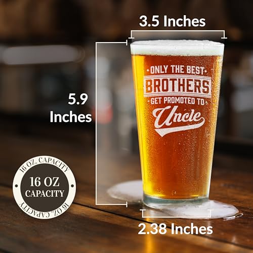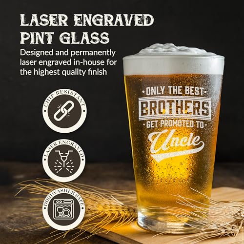 Specification: Only The Best Brothers Get Promoted To Uncle Laser Engraved Beer Pint Glass 16 oz. Pregnancy Announcement Gift