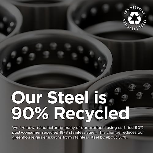 Climate Lock vacuum insulation; Made from certified 90% post-consumer recycled 18/8 stainless steel
