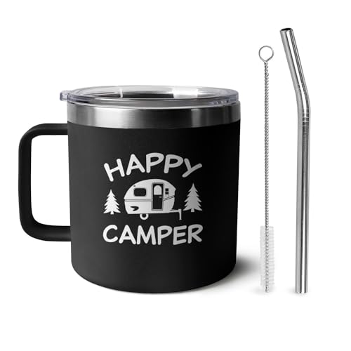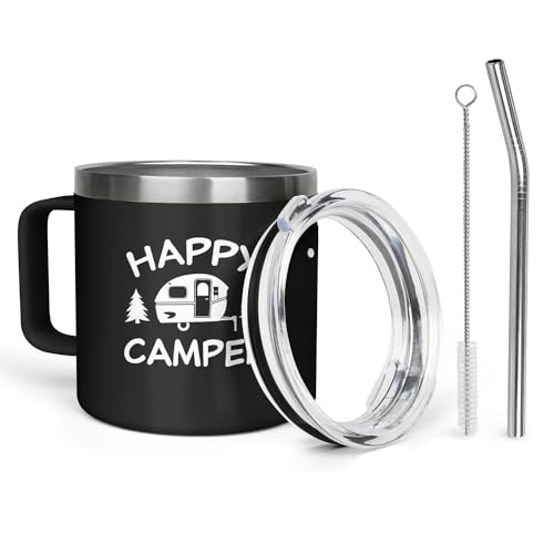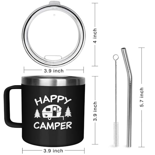 Ceovfoi 14 camper 14 oz Camping Coffee Mug Cup Vacuum Insulated Travel Tumbler with Handle Lid and Straw,Rv Camping Essentials Accessories