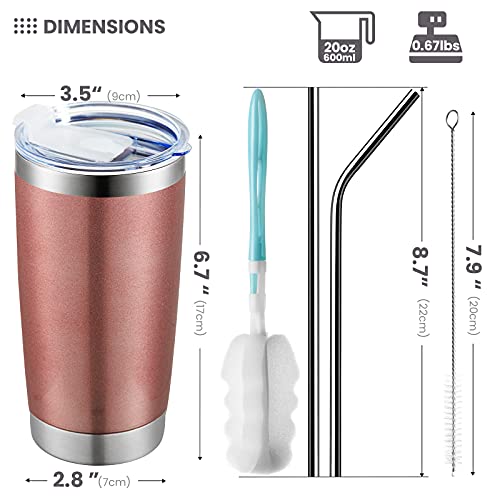 COKTIK 20oz Tumbler Cup Double Wall Vacuum Insulated Travel Mug Bulk, Stainless Steel Tumblers with Lid, Durable Powder Coated Coffee Cups for Cold & Hot Drinks, RoseGold