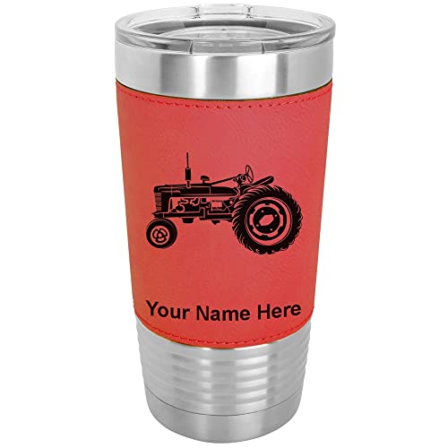 Specification: LaserGram 20oz Vacuum Insulated Tumbler Mug, Old Farm Tractor, Personalized Engraving Included (Faux Leather, Red)