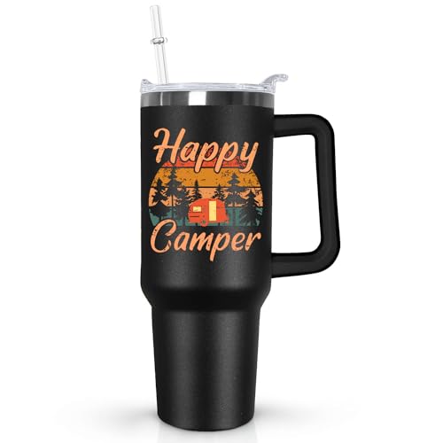 🏕Camping Essentials :Camping cup specially designed for happy happy camper , 40 oz tumbler ,40 oz cup,40 oz water bottle, Camping coffee tumbler,Camping mugs,Camping cup, Camping tumbler,Camping coffee mug,Camping water botter,Which can be put on the cup holder of most cars and put anywhere as you want and no worry to wet your place.