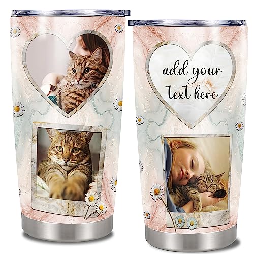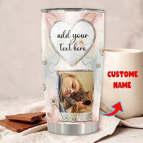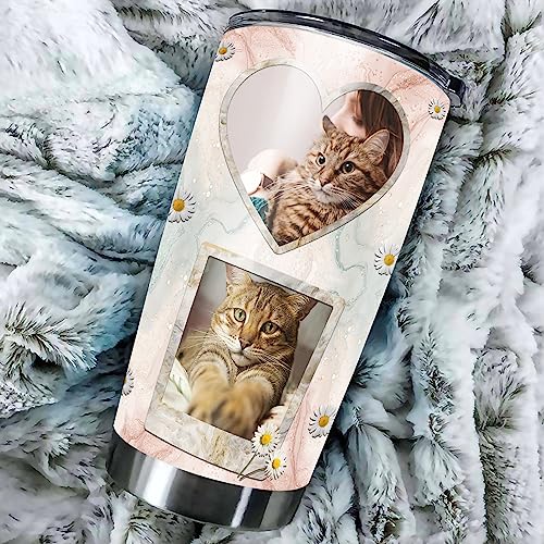 Personalized Photo Tumbler Custom Picture Text Name Travel Coffee Mug Cat Insulated Stainless Steel Cups Novelty Customized Gifts For Cats Pet Lovers Mom Women