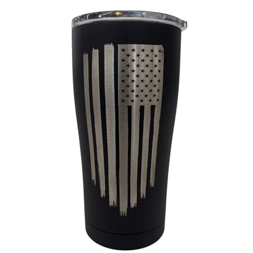 Specification: REFLECTIVE SOLUTIONS – American Flag Tumbler – 20 oz Black Tumbler – Distressed American Flag – Made in the USA American Flag Coffee Tumbler with Lid – Made from SIC Cup Double Walled Tumbler