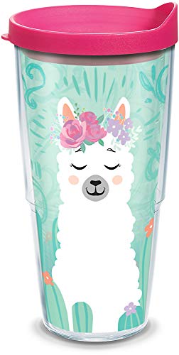 Tervis Llama Flora Made in USA Double Walled Insulated Tumbler Travel Cup Keeps Drinks Cold & Hot, 24oz, Clear