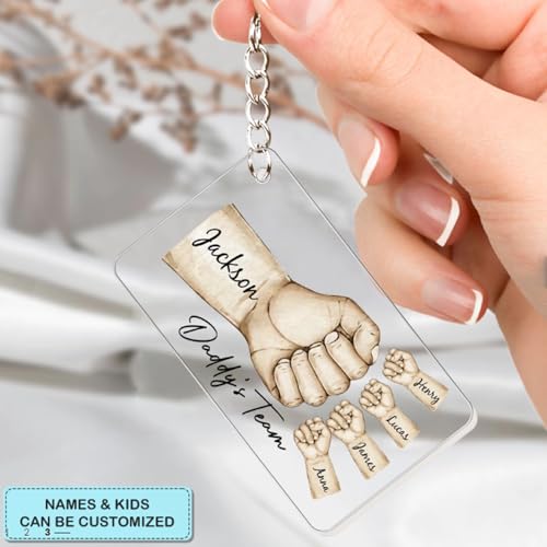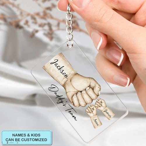 IZI POD Daddy’s Team Fist Bump Personalized Acrylic Keychain Father’s Day Idea Gift For Papa Birthday Gift For New Father