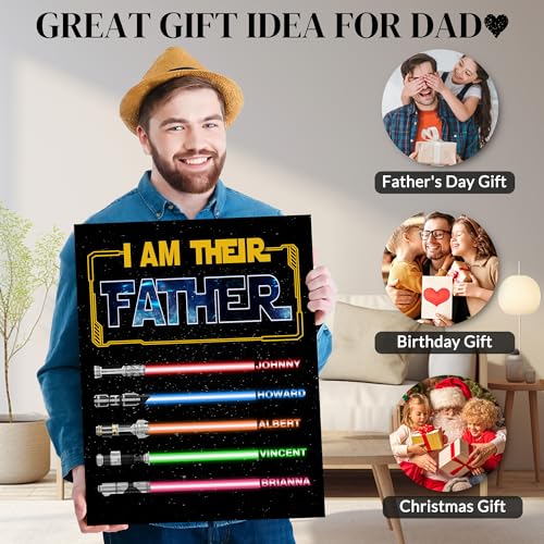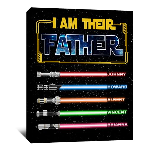 Specification: BMYDIY Personalized Fathers Day Unique Gifts for Dad from Son Daughter, Custom I Am Their Father Lightsaber Canvas Prints with Name, Customized Birthday Christmas Gifts for Husband from Wife