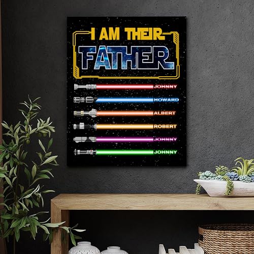 BMYDIY Personalized Fathers Day Unique Gifts for Dad from Son Daughter, Custom I Am Their Father Lightsaber Canvas Prints with Name, Customized Birthday Christmas Gifts for Husband from Wife