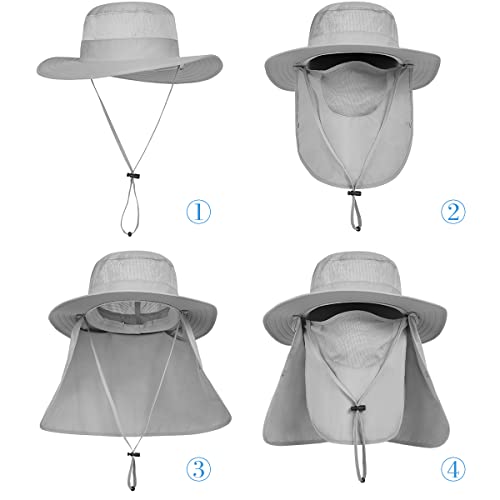 3 Pack Mens Outdoor Wide Brim Fishing Hat,UPF 50+ Sun Protection Cap with Face Neck Flap for Hiking & Garden