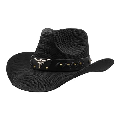 SAJUZEN Men & Women’s Straw Cowboy Hat with Wide Brim