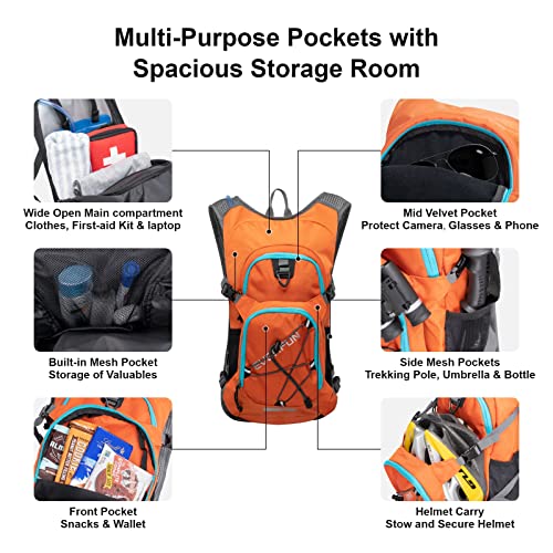 HIKING/CYCLING/SKIING WITH EASE — With Ultra-Elastic 3D breathable padded back & adjustable chest, waist straps, this 2 pounds lightweight hydration backpack is comfortable and stable, best possible fits all sizes.