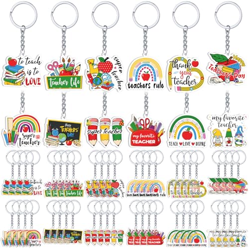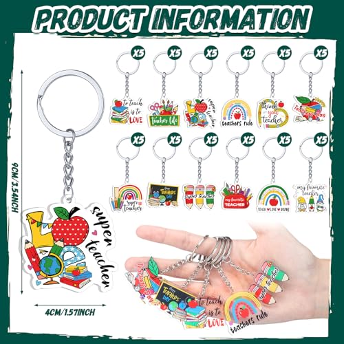 Specification: Kigeli 60 Pcs Teacher Keychain Bulk Teacher Appreciation Gifts in Bulk Acrylic Key Rings Teacher Gift Teacher Accessories