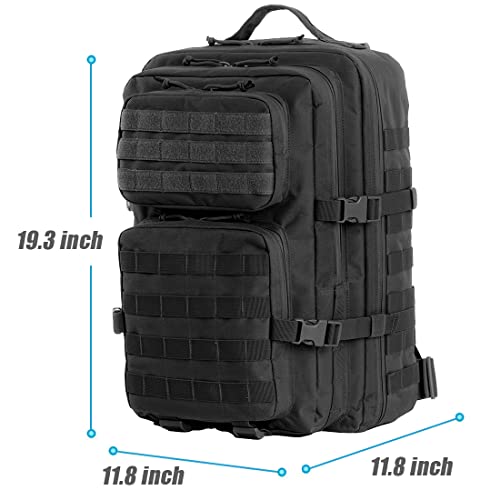 Black Tactical Backpack, Military Backpack, Molle Backpack, 42L, Large Army 3 Day Assault Pack (Black)