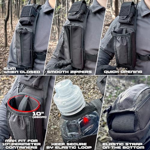 EXPANDABLE DESIGN FOR MOST 12 OZ: Backpack strap pouch equipped an expandable design for bottle, rapidly unzipping to unfold into a rectangular space in a second, with upper and bottom elastic edge straps to keep your kettle deep into the pouch and prevent it from flapping around during strenuous shifts. Note: Won’t fit 32oz Nalgene widemouth bottle, but accommodate bottles with an opening circumference of 26 cm, approximately 20oz.