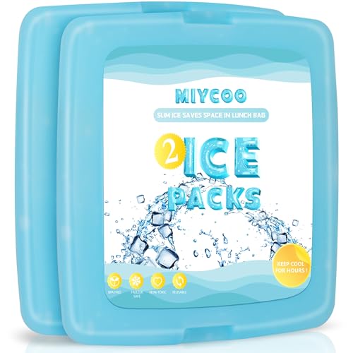 MIYCOO Ice Packs for Lunch Boxes & Lunch Bag – Quick Freeze Ice Pack Space Saving Freezer Packs – Reusable Slim Original Cool Pack – Cool Coolers Accessories for Beach, Camping and Fishing – 2PC