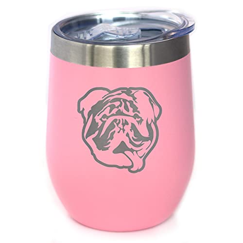 Bevvee Bulldog Wine Tumbler with Sliding Lid – Stemless Stainless Steel Insulated Cup – English Bulldogs Outdoor Camping Mug – Pink