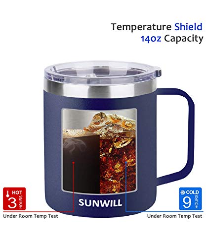 Specification: SUNWILL 14 oz Coffee Mug Set, Vacuum Insulated Camping Mug with Lid, Double Wall Stainless Steel Travel Tumbler, Coffee Cup Outdoor, Powder Coated Navy Blue & Wine Red 2 Pack