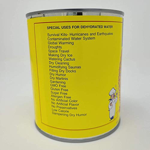 Specification: Bernard Food Industries Dehydrated Water 8oz Can. NEW Formula! Essential Camping & Survival Supply. Funny Gag Gift & Adult Stocking Stuffer for Men & Women.