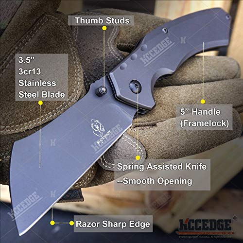 KCCEDGE BEST CUTLERY SOURCE EDC Pocket Knife Camping Accessories Razor Sharp Edge Cleaver Blade Folding Knife Camping Gear Survival Kit 57598 (Grey)