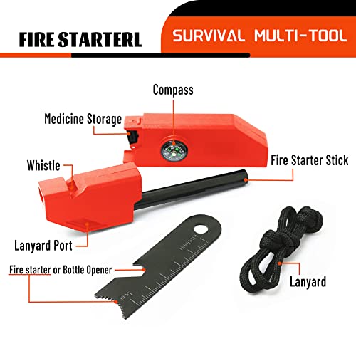 【6-IN-1 MULTI SURVIVAL TOOL】The Fire Starter Kit Combines A Variety Of Functional Uses, Including High-Temperature Magnesium Rods, Steel Strikers, Built-In Compass, Emergency Whistles, Medicine Storage Box,Tinder Scraper, Map Scale, Hex Wrench, Bottle Opener.