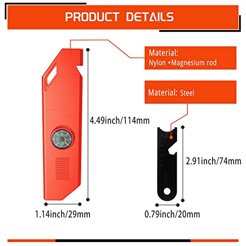 Specification: Magnesium Fire Starter Survival Tool 6-in-1 Flint and Steel Survival Kit Orange Ferro Rods Fire Striker Emergency Whistle