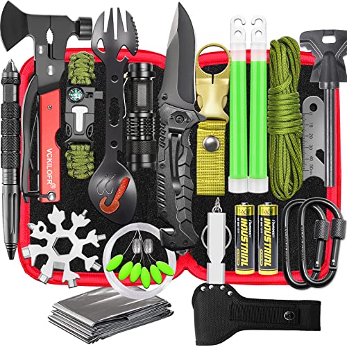 VCKILOFR Gifts for Men Dad Husband Fathers, Camping Survival Gear and Equipment Kit 32 in 1, Cool Gadgets Christmas Birthday Gift Ideas for Him Boyfriend