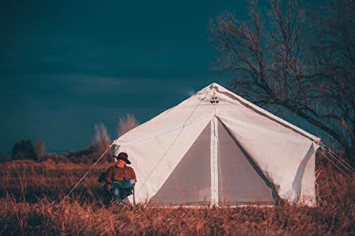 HIGHLY DURABLE AND WATERPROOF: Higher break and tear strength than the other materials to be had. More resistant to ultraviolet rays, will live longer than cotton canvas and does not shrink like cotton. Our tent does not absorb water like cotton since it is made from a waterproof fabric and is seams sealed. It also doesn’t require a rainfly.