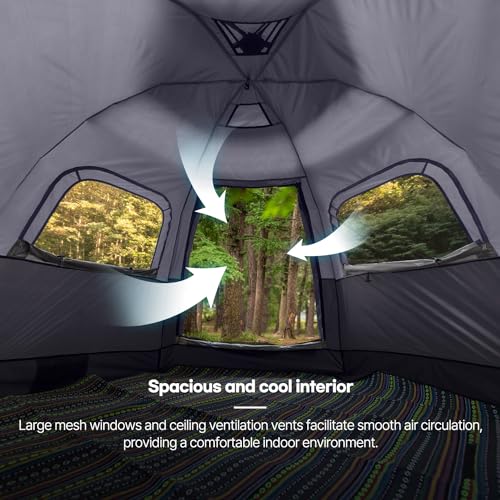 IDOOGEN Instant Tent,Pop Up Tent,Camping Tent for 4 Person,2 Mesh Windows & 2 Doors,Hexagonal Design,Easy Set Up Tent with Vestibule & Rainfly