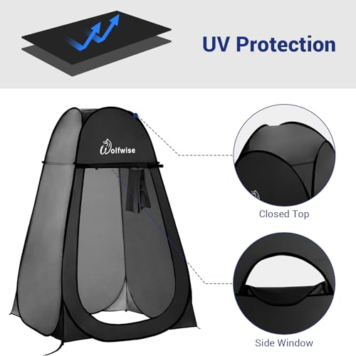 WolfWise Portable Pop Up Privacy Shower Tent Spacious Changing Room for Camping Hiking Beach Toilet Shower Bathroom Black