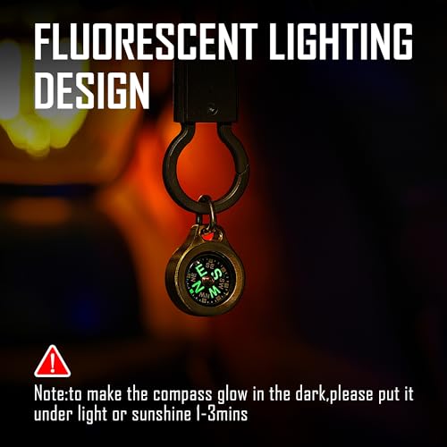 WATERPROOF AND LUMINOUS: Waterproof IPX5, uses special encapsulation technology to improve the sensitivity and precision. Don’t worry about damage from extreme temperatures or drops. The brass compass glows in the dark after being exposed to sunlight or brief light, Navigate in night hiking and survival. (Due to the high sensitivity of the compass, please keep it away from magnetic objects like keychain.)