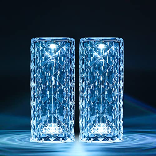 2Pcs Crystal Table Lamp, RGB Colors Changing Night Light Touch & Remote Control, Romantic LED Rose Diamond Lamp for Bedroom Kids Girls Christmas