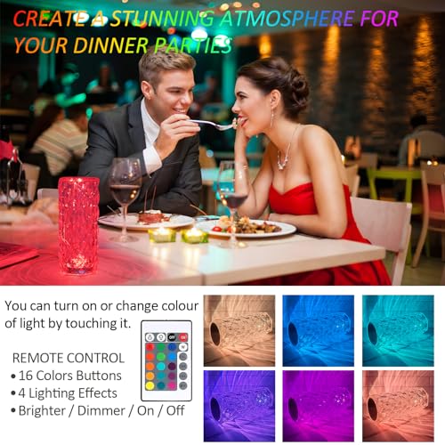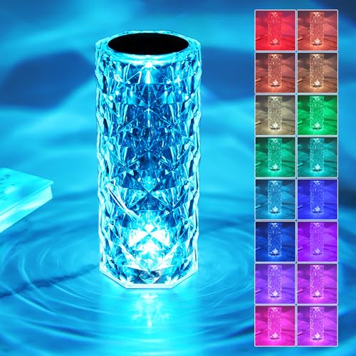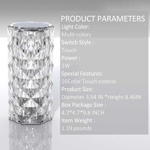 Specification: Crystal Table Lamp with Touch Control and Remote Control, 16 Colors Changing USB Charging Night Light Rose Diamond Acrylic Crystal Romantic Nightstand Lamp for Bedroom Living Room