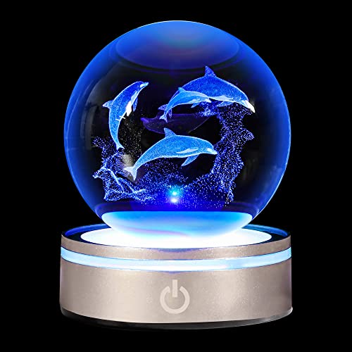 Specification: Dolphin Gift 3D Crystal Ball with LED Light Base Unique Figurine Lamps Laser Engraved Nightlight for Kids Gifts Dolphin Lovers Girlfriend Wife Mom Lovers Girls Boys Birthday Christmas
