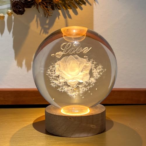 Specification: 3D Crystal Ball,Night Light,Rose Crystal Lamp,Figurine Lights,Moon Ball 3.15 Inch,with Wood Base,Idea Gift,for Bedroom, Birthdays, Mother’s Day