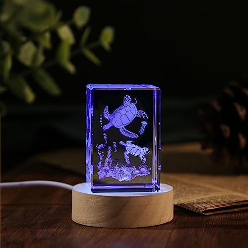 3D Crystal Turtle Figurine Night Light with LED Light Base, Birthday Gifts for Kids Women Unique, Thanksgiving Christmas Valentines Anniversary Birthday Gifts for Lovers